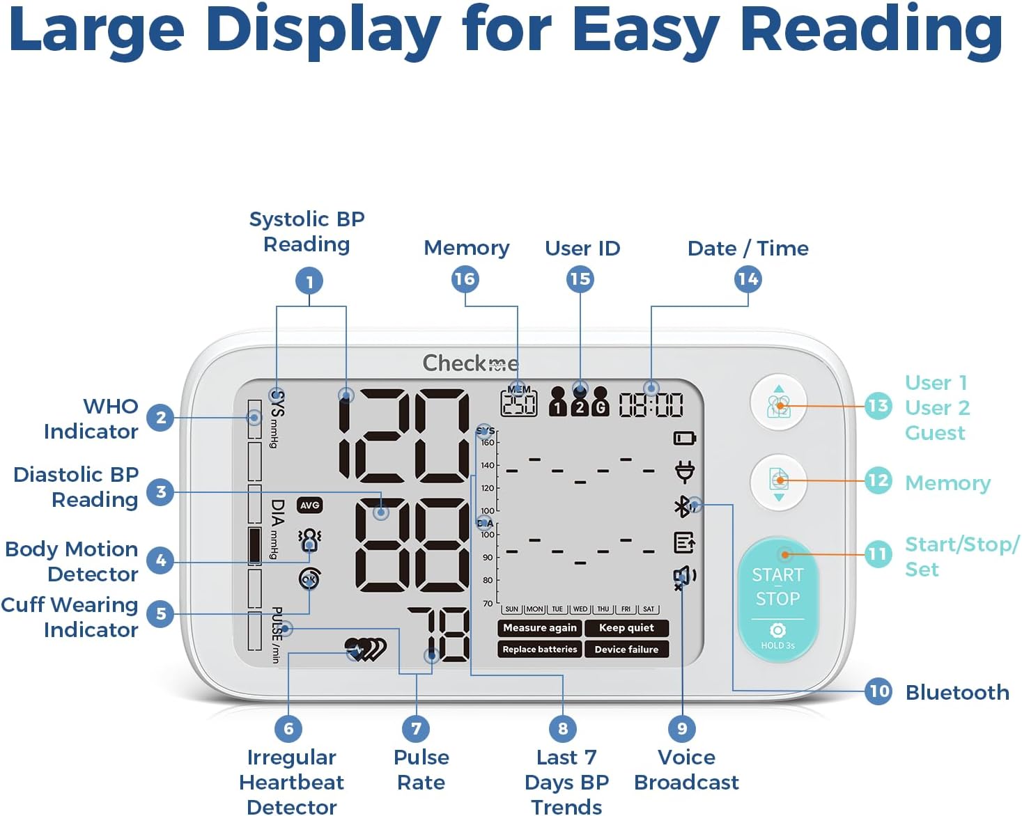 – User-friendly with large display and voice function