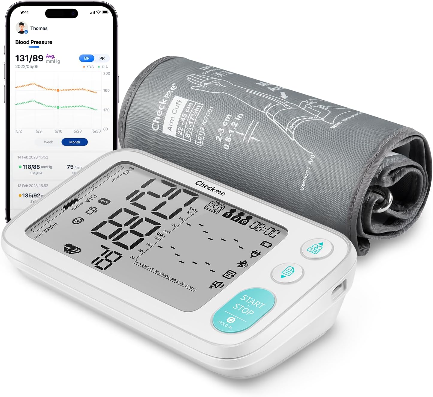 Checkme Bluetooth Blood Pressure Monitor with XL Cuff